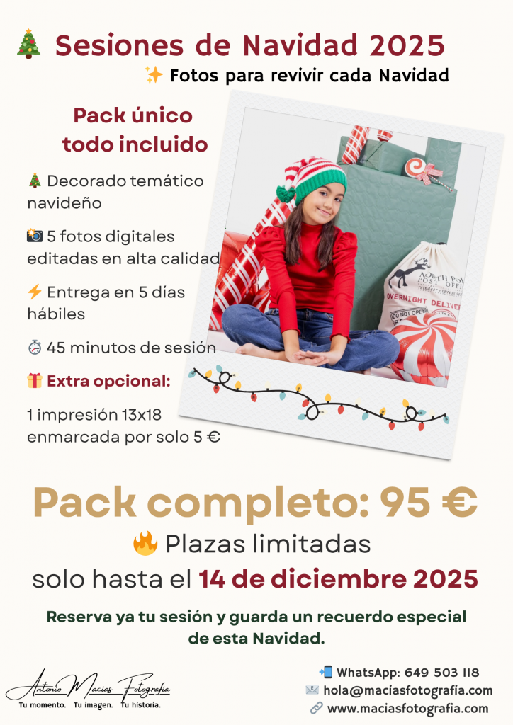 Descubre la magia de la Navidad con nuestras sesiones de fotografía personalizadas. Capturamos la esencia de esta temporada en retratos elegantes y sencillos para todas las familias. Un regalo perfecto para crear recuerdos inolvidables.